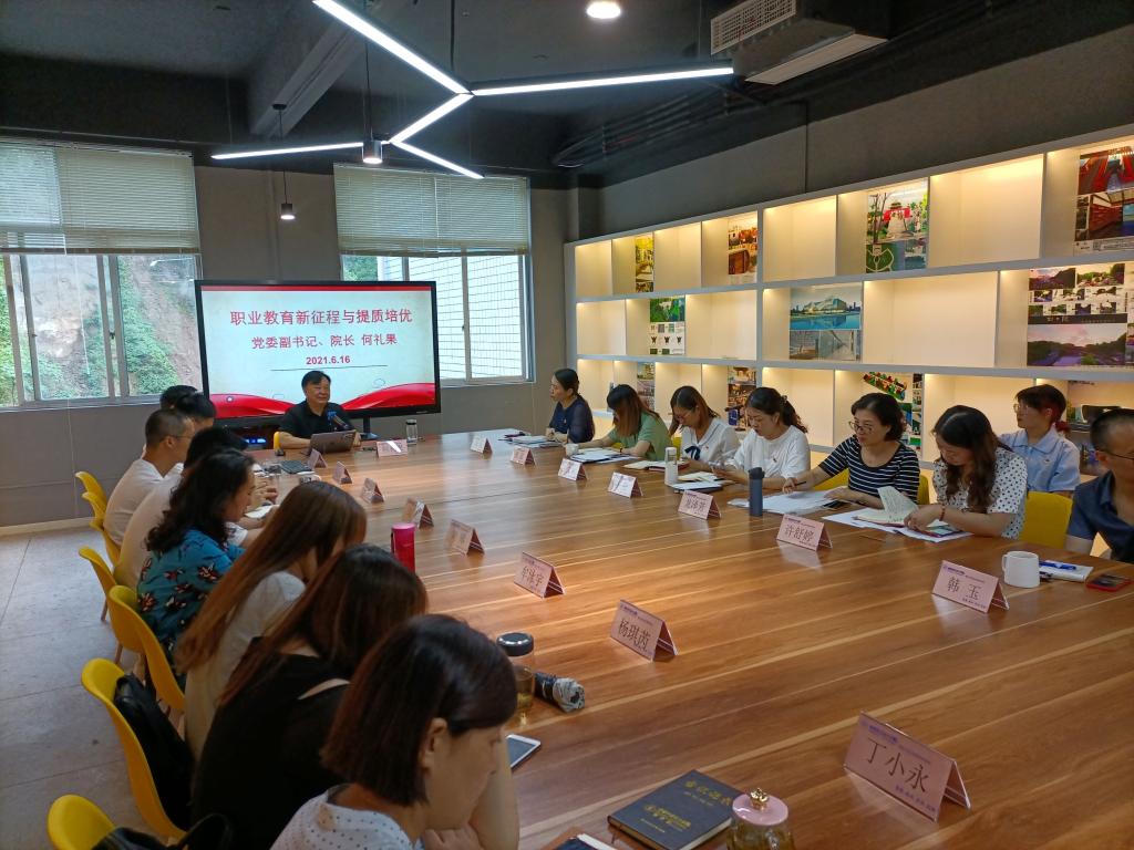 为庆祝建党100周年,深入贯彻习近平新时代中国特色社会主义思想,深化新时代学校思想政治理论课,6月16日,党委副书记、院长何礼果教授为艺术系师生上了题为《职业教育新征程与提质培优》的党课暨专题思政课。