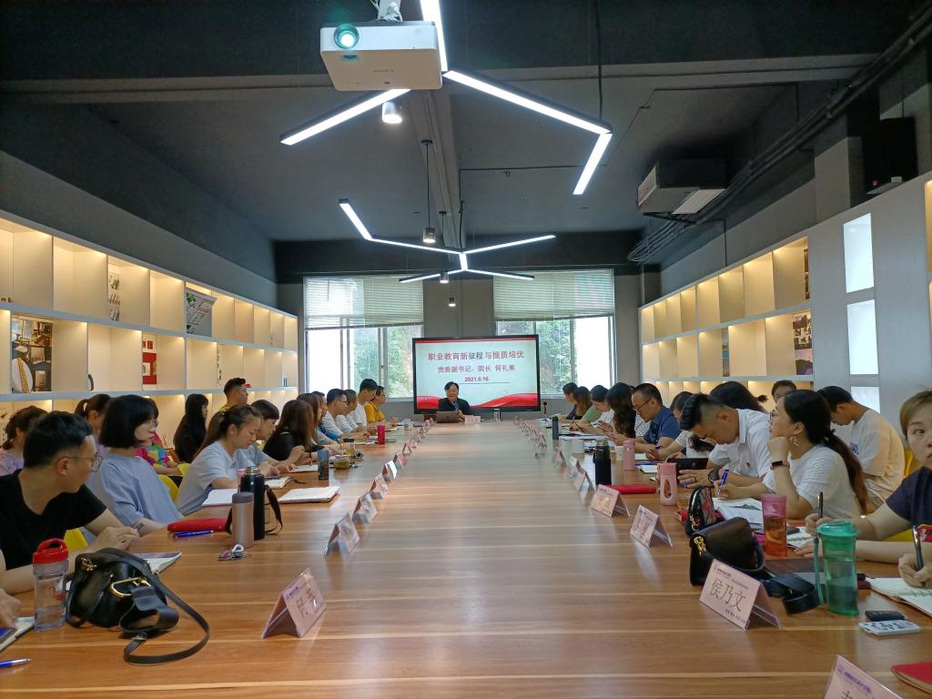 何礼果解读《中华人民共和国国民经济和社会发展第十四个五年规划和2035年远景目标纲要》中关于“建设高质量教育体系”“增强职业技术教育适应性”的重点要求。他指出增强职业技术教育在政策、目标、功能、体系、制度等十个方面适应性,最关键的是要着眼于准确把握新发展阶段、深入贯彻新发展理念、加快构建新发展格局,为推动现代职业教育高质量发展指明了方向。随后,结合我校双高建设工作,对《职业教育提质培优行动计划》十大任务进行了分析,他强调高职教育要以质图强,坚持内涵发展、特色发展、创新发展、高水平发展,从而实现职业教育现代化。