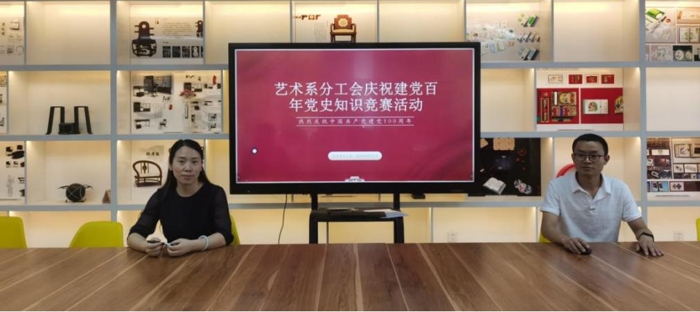 为庆祝中国共产党成立100周年,6月25日,艺术系分工会在会议室举行了党史知识竞赛,全体教职工分为四组参加答题竞赛,分工会主席韩尧主持了竞赛。