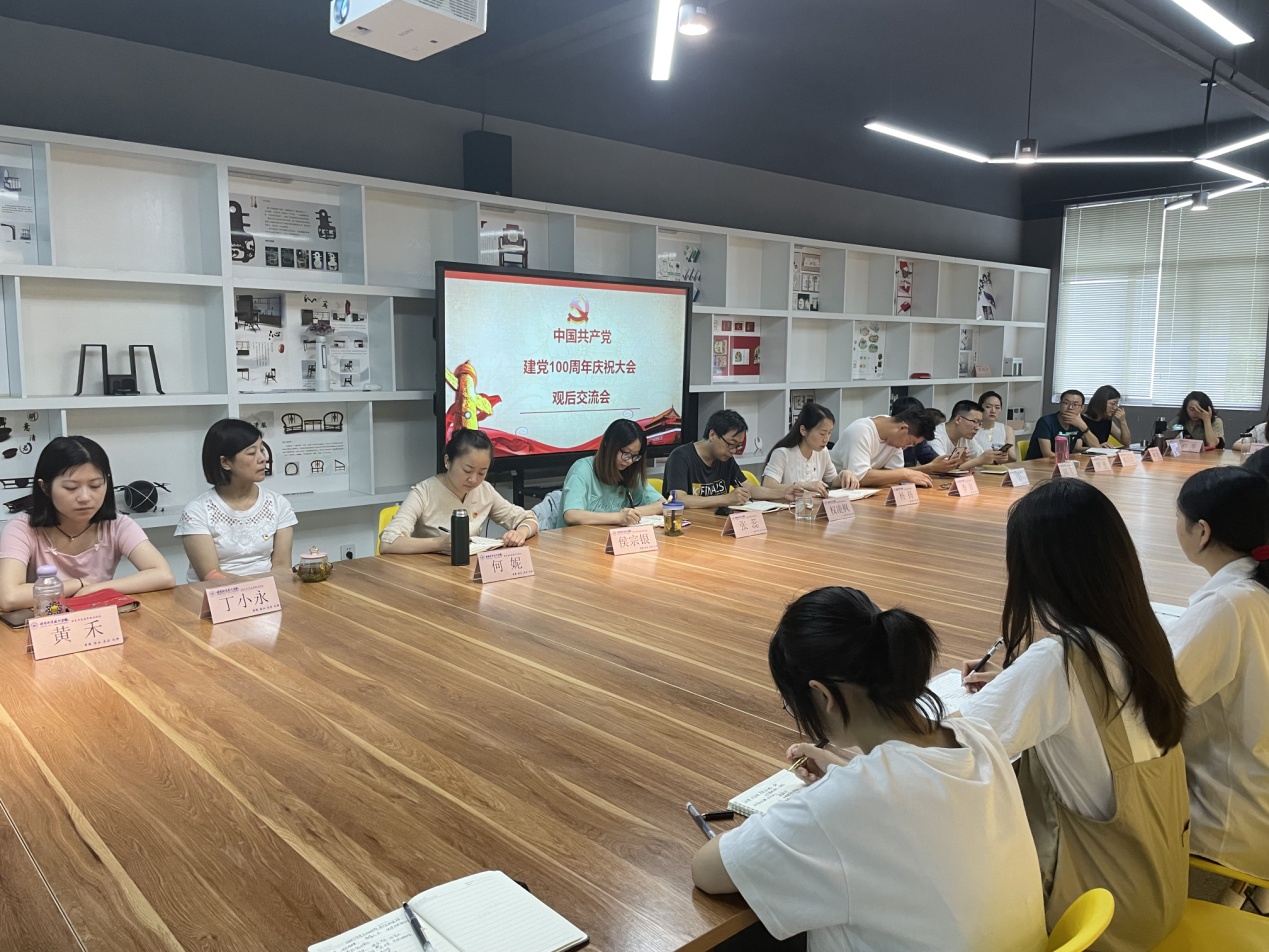 7月1日,为热烈庆祝中国共产党成立100周年,激发爱党之情、奋斗之志,艺术设计学院组织全体党员教师及学生观看了庆祝中国共产党成立100周年大会。同时,庆祝大会结束后召开了讨论交流会议,会议由艺术设计学院党总支书记杨扬主持。