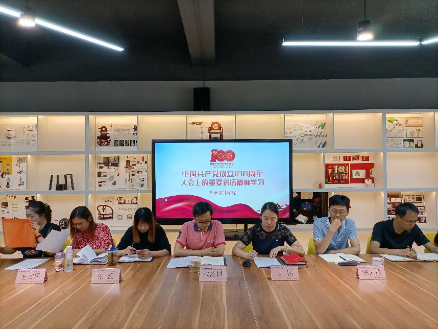 7月7日下午,艺术设计学院组织学习习近平总书记在庆祝中国共产党成立100周年大会上的重要讲话精神。会议由党总支书记杨扬主持,全院教职工参加会议。