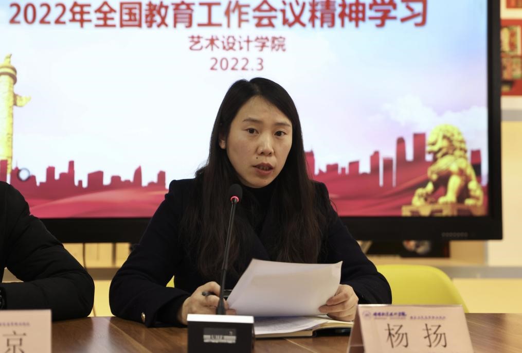 3月2日,艺术设计学院开展《2022年全国教育工作会议》精神专题学习会,会议由艺术设计学院党总支书记杨扬主持,全体教职员工参加。