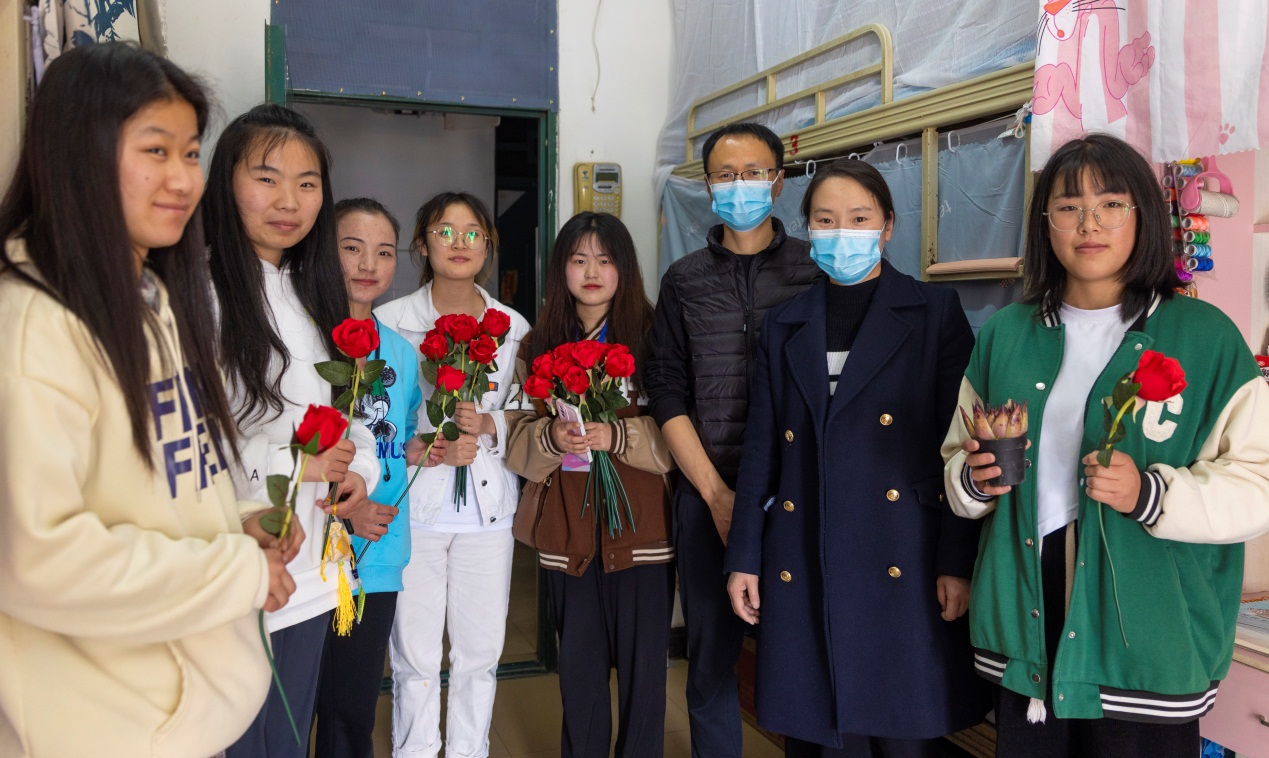 暖阳三月,春风十里,第112个“三八”国际劳动妇女节如期而至。3月8日中午,艺术设计学院领导班子、学生管理相关同志及全体团总支、学生会干部深入女生寝室走访慰问了女同学,向她们送上了鲜花和节日的祝福。