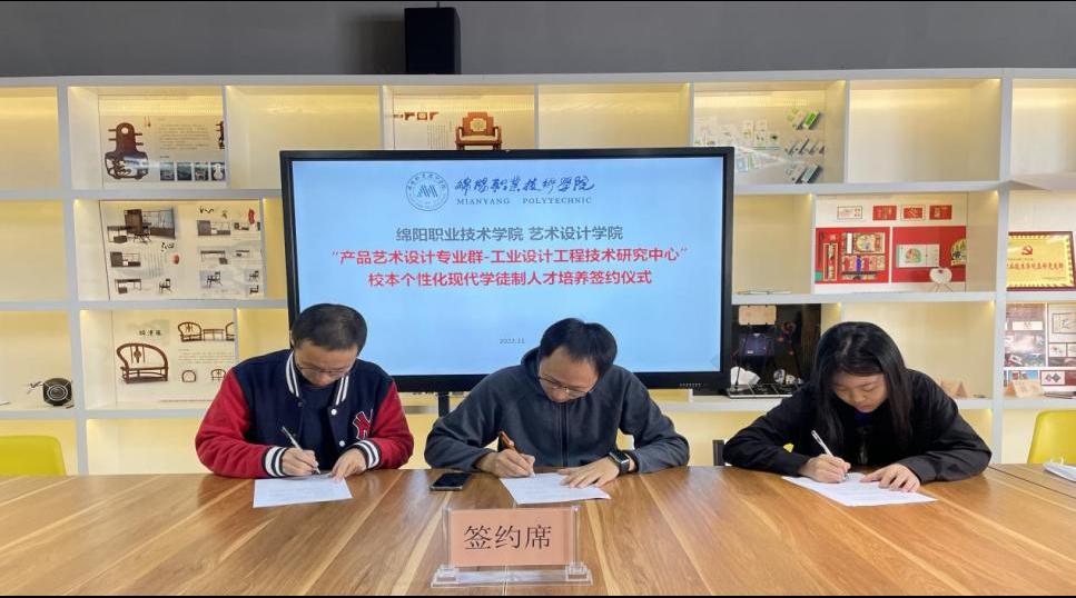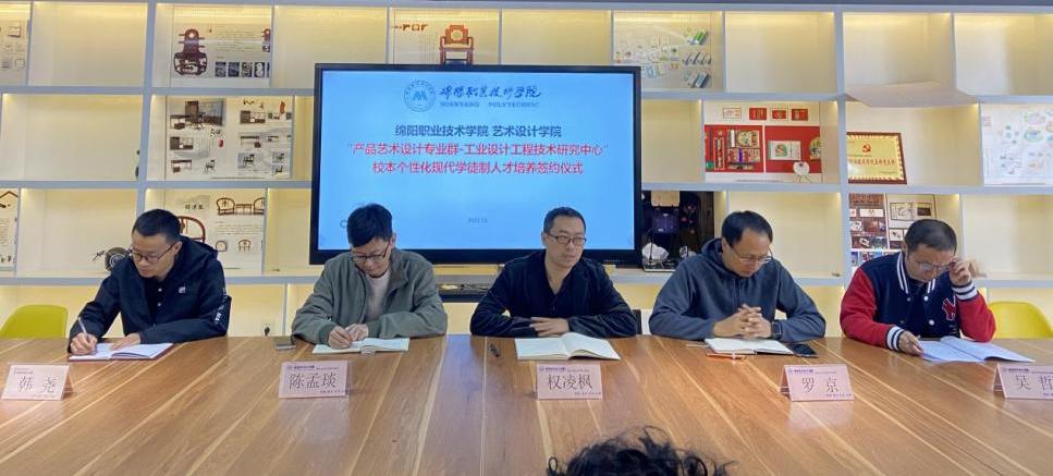 2022年11月1日上午,在艺术设计学院会议室举行“产品艺术设计专业群——工业设计工程技术研究中心”2022年第二期校本个性化现代学徒制人才培养师徒结对签约仪式。参加签约仪式的有艺术设计学院院长权凌枫、副院长罗京、副院长陈孟琰、工业设计教研室主任韩尧、工业设计工程技术研究中心负责人吴哲,以及师徒结对学生。