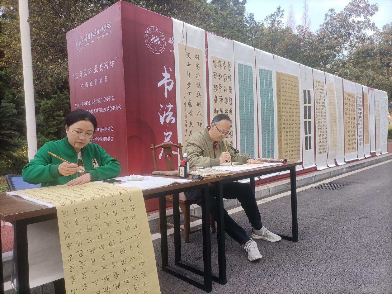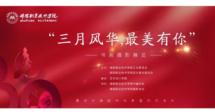 2023年3月8日,在第113个国际妇女节来临之际,由绵阳职业技术学院工会委员会、妇女联合委员会主办,艺术设计学院承办的师生书画摄影作品展在学校第一教学大楼展出,活动展出了各类书画作品50余幅,摄影作品150余幅,展出作品内容积极向上,体现了当代女教师的文化内涵和艺术修养,现场还进行了书法现场展示,活动取得圆满成功。