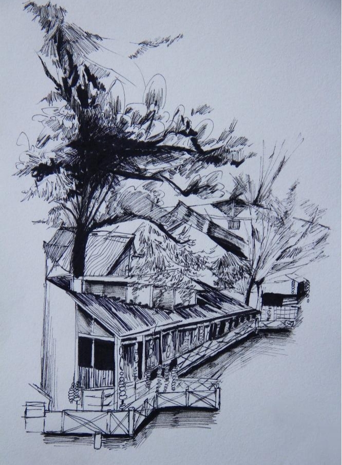 柳江古镇距今已有800多年历史,斑驳的石板长街贯穿古镇,沿江两岸坐落着古朴的木板房吊脚楼,根枝盘错的古树点缀在其中。到达驻地后,设计基础教研室的老师们带领学生进行写生踩点考察。随后,各位老师在各个写生点示范表现柳江风貌的技巧和方法,严格按照写生计划落实教学任务,让学生通过绘画来表达自己对柳江古镇魅力的领悟。学生作品有景色秀美的绿水青山,有雅致古朴的街道建筑,有烟雨意境的广告宣传画,将柳江的特色和传统文化元素融入艺术创作之中。