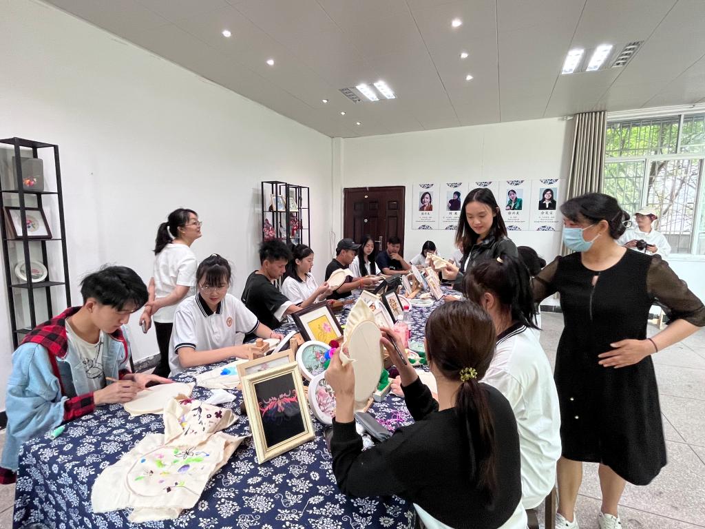 为深入学习贯彻党的二十大精神,贯彻落实新修订的职业教育法,为了让中外青少年都感受中华民族传统文化的魅力,在2023年成渝地区双城经济圈职教活动周期间,来自老挝的绵阳职业技术学院国际留学生与游仙职业技术学校30余名师生于5月19日走进艺术设计学院杨华娟羌绣大师工作室,参加“羌绣体验活动”。