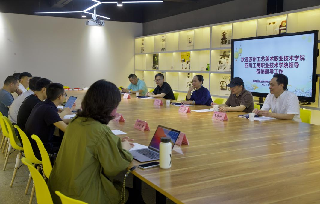 9月15日,艺术设计学院召开对口协作需求调研会。苏州工艺美术职业技术学院继续教育学院院长丁红、美术学院院长兼高水平建设办公室主任周清、视觉传达学院院长汪维山,四川工商职业技术学院设计艺术学院党总支书记黄志刚一行莅临我校参会。丁红一行首先参观了校园及校史馆,随后,双方齐聚一堂,在艺术设计学院会议室举行了交流座谈会,共同探讨对口协作、合作共建、教师培训等重要议题。