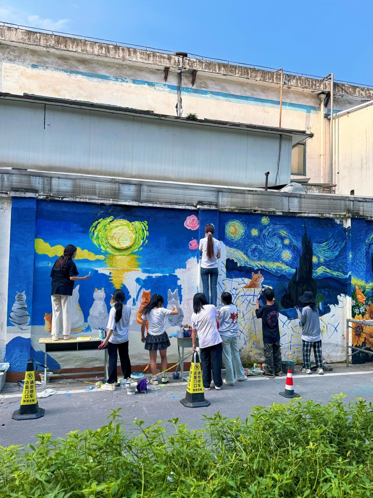 活动当天,教师带领学生们携带专业绘画工具早早来到现场,分工协作开展作业。有的负责墙面清洁与打底,确保彩绘基底平整;有的根据设计稿勾勒轮廓,精准呈现画面结构;有的专注色彩填充,用明亮饱满的色调传递积极向上的文化内涵。在 “孝亲敬老” 主题墙绘制现场,教师党员们细致描绘 “孔融让梨”“黄香温席” 等传统故事场景,线条流畅、形象生动;儿童游乐区墙面则以蓝天、白云、卡通动物为元素,打造出充满童趣的互动空间,吸引不少社区儿童驻足观看,甚至主动拿起画笔参与简单涂色环节。