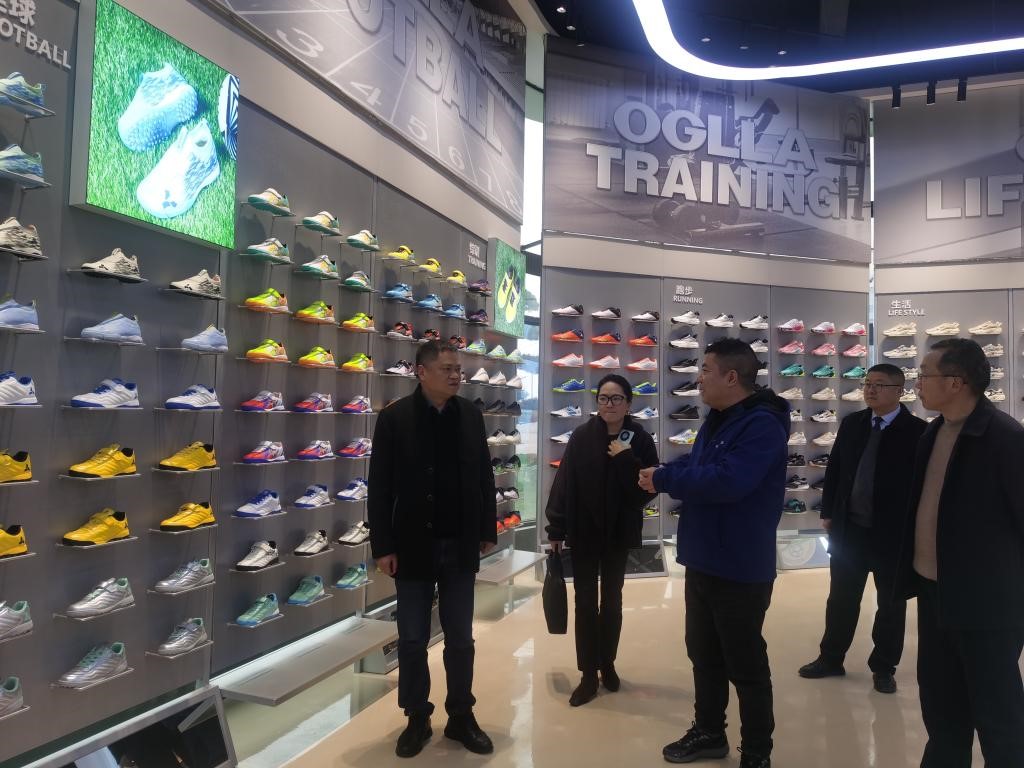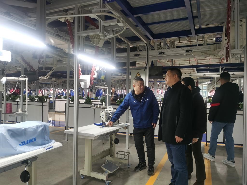 在安吉纳数字产业园企业领导的陪同下,杨建国副校长一行及艺术设计学院党员教师代表先后参观了园区体育产品陈列室、数字化服装生产车间。调研过程中,企业相关负责人详细介绍了安吉纳作为前沿体育服装企业的创新发展理念、核心生产技术及市场布局,重点展示了数字化生产设备在服装制造中的应用成果,让参与调研的党员教师直观了解了服装行业的技术革新趋势和产业发展需求。